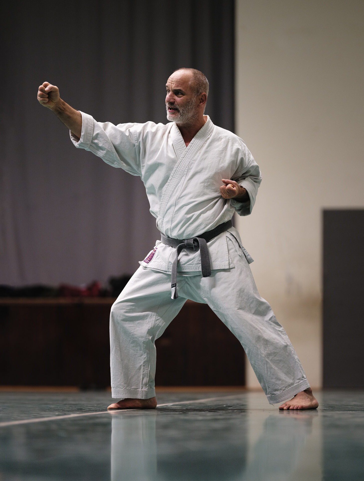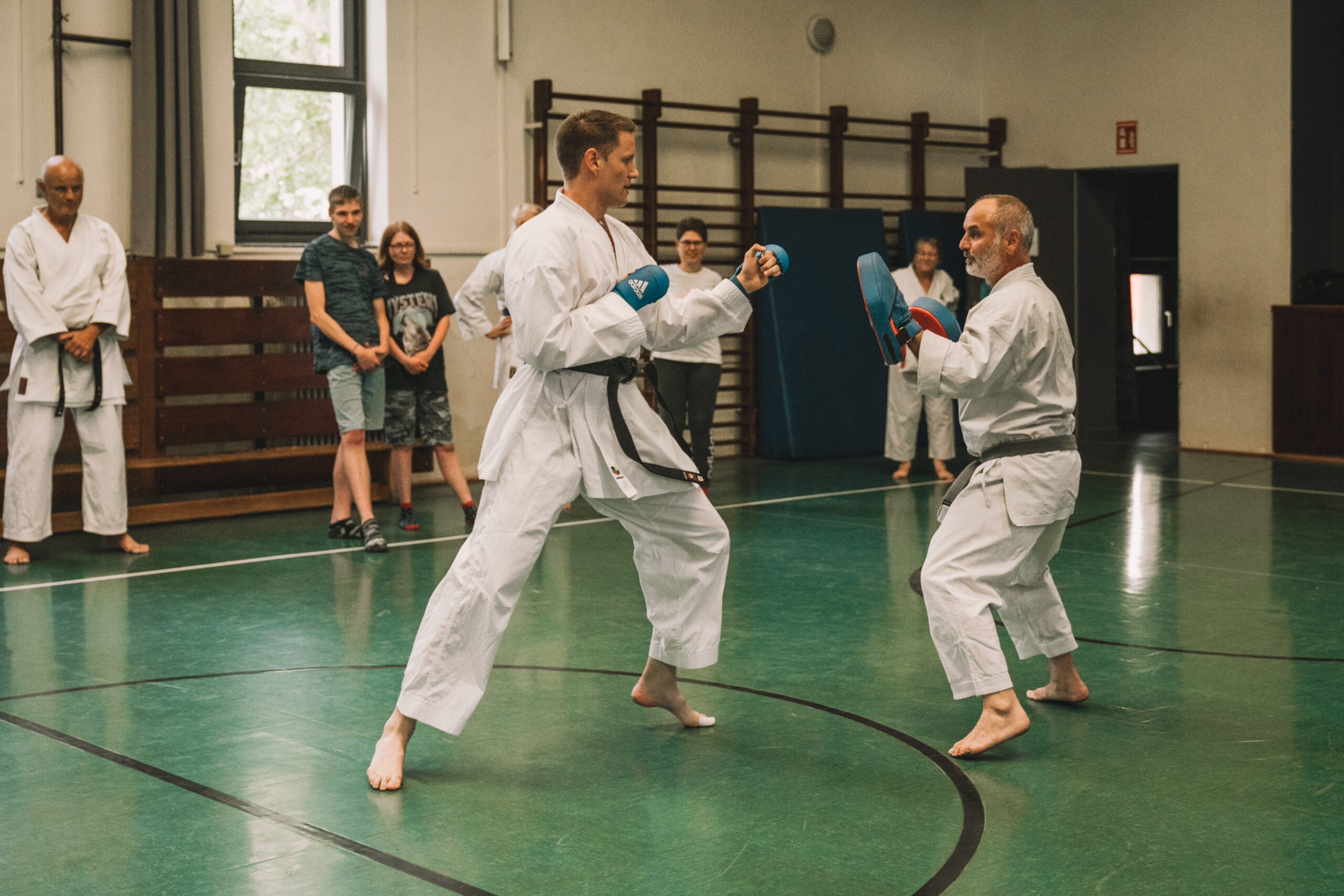 Hallo Freunde, Gottfried und ich waren begeistert zu sehen, wie sich unser Karateka mit der Heian Yondan, der Hangetsu und der Gojushiho Sho abmühten. Die komplexeren Bewegungsabläufe und