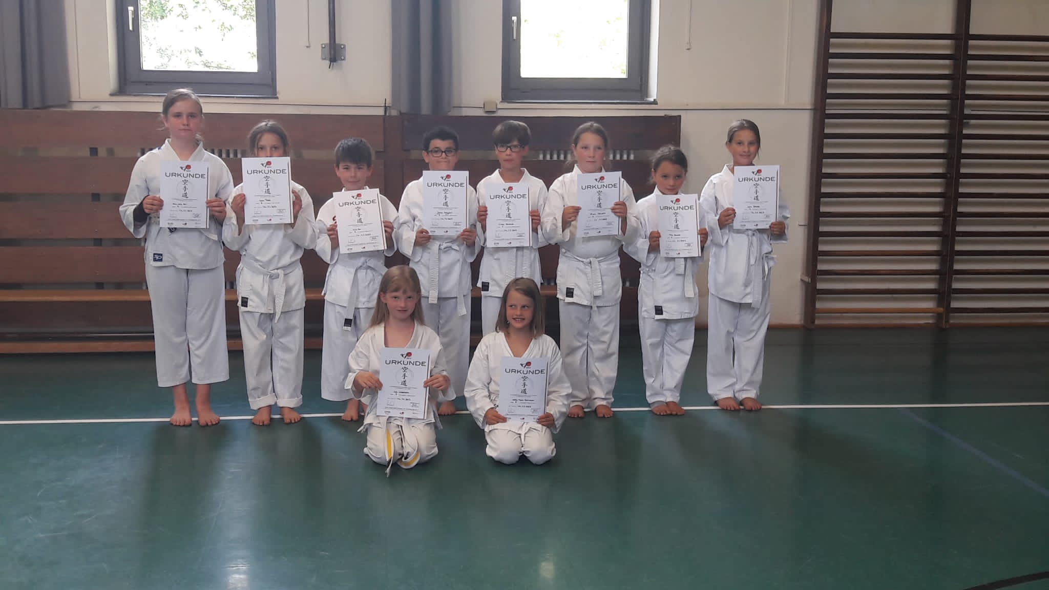 Nach 2 Jahren Pause erste Prüfung für Kinder und Schüler von Weißgurt bis Violettgurt.
