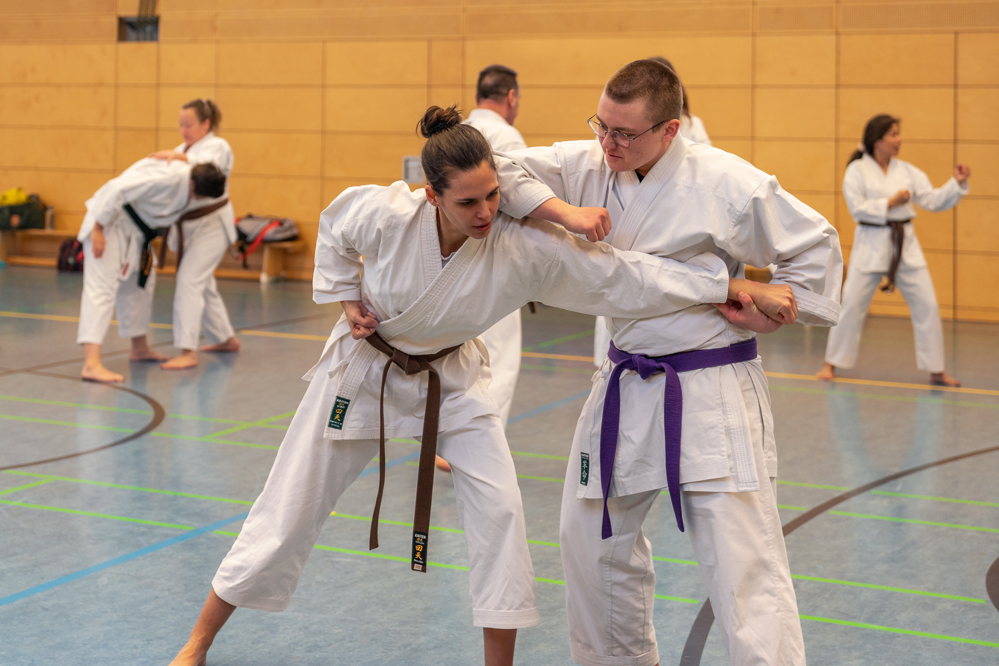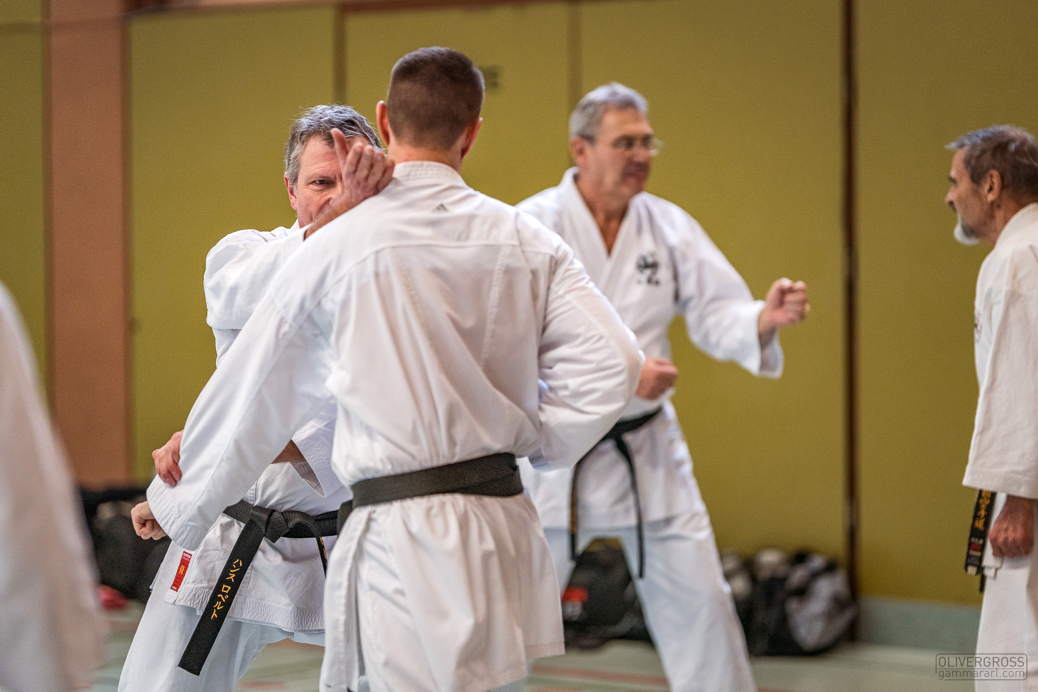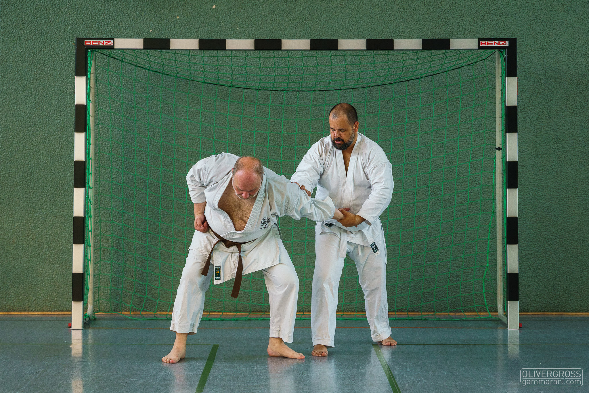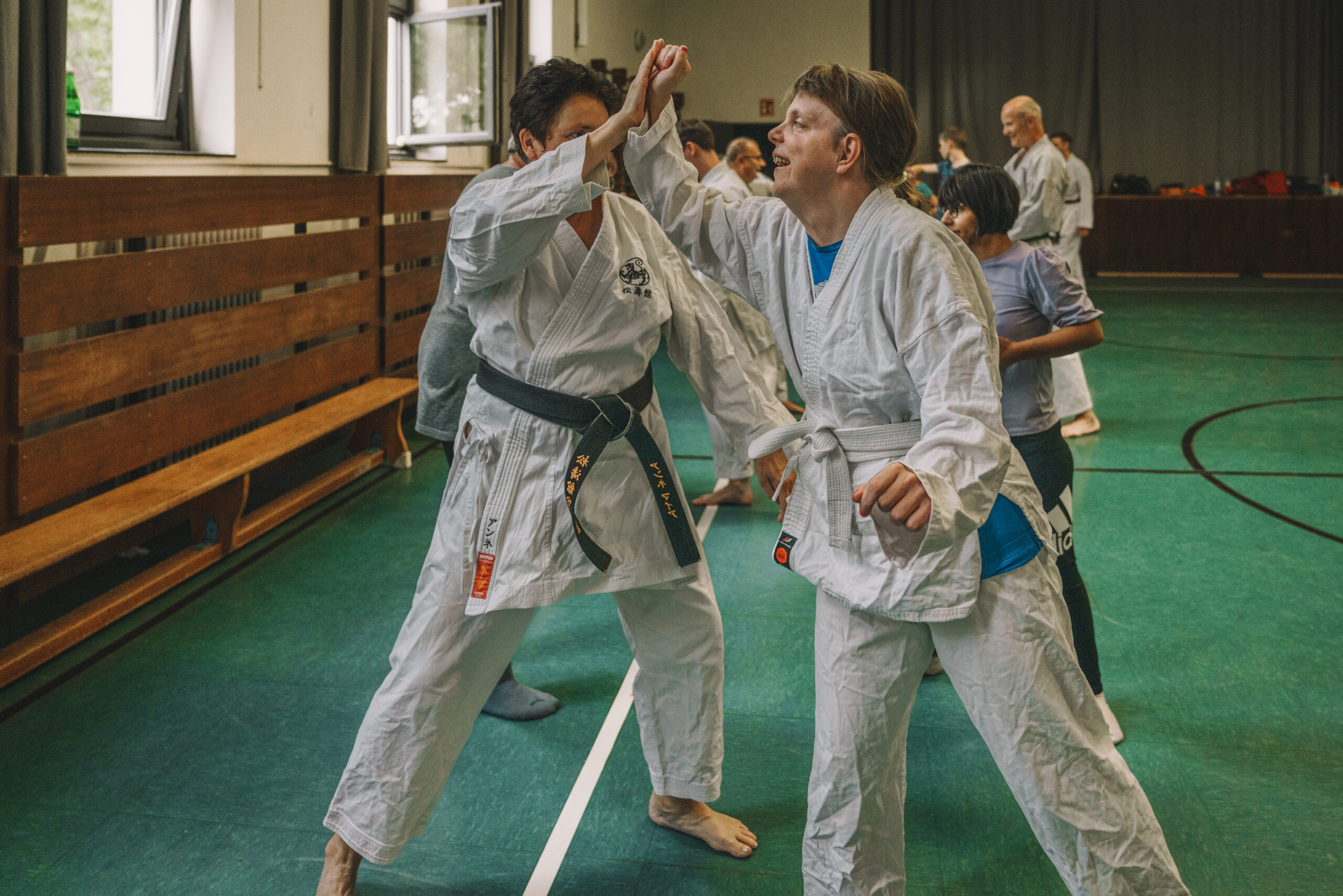 Neben den flüssigen Bewegungen in der Goju Shiho Sho übten wir auch fleißig Bunkai. Den Erfolg seht ihr auf den Bildern. Zur Erheiterung trug meine Bemerkung bei, dass
