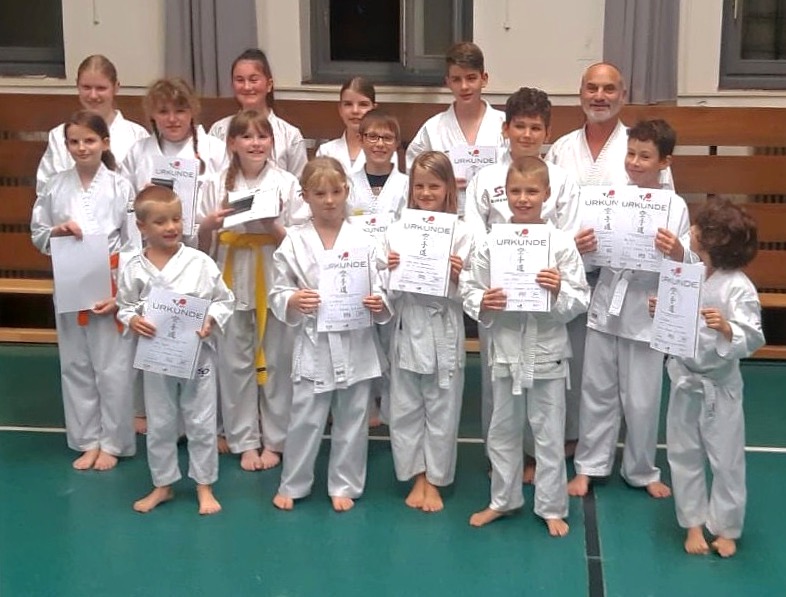 Nach 2 Jahren Pause erste Prüfung für Kinder und Schüler von Weißgurt bis Violettgurt.